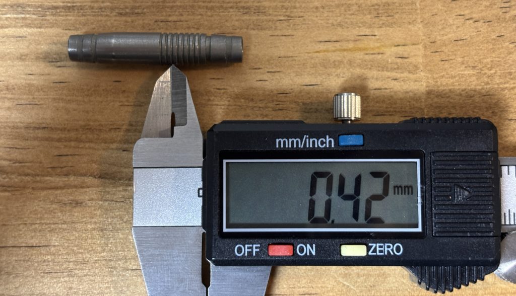 最大径7.30mmの場所を基準に単純計算すると、通常リングの溝底は7.30 – 0.8 = 6.50mmとなります。